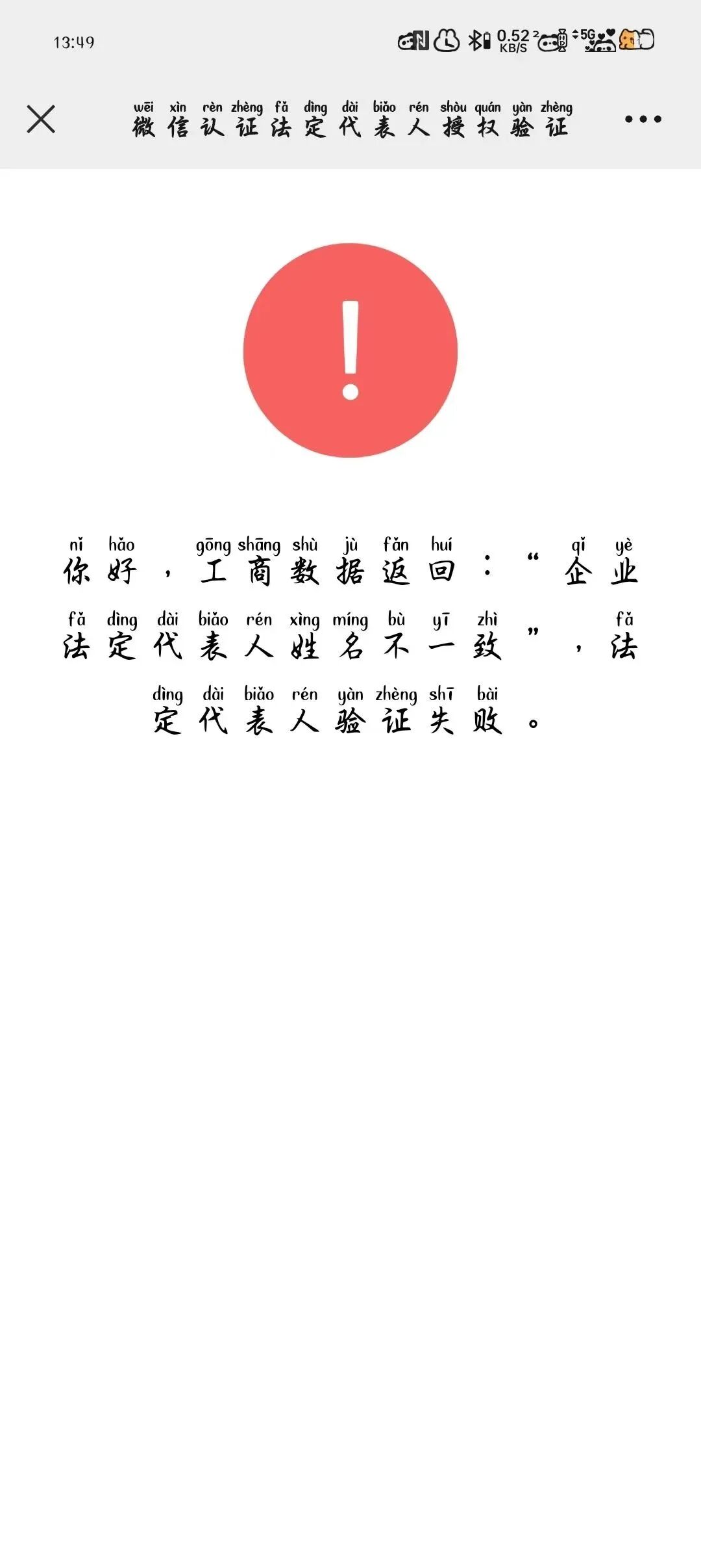 公众号主体个体工商户的括号应该是中文的()而我修正主体的时候直接改成了英文的(),导致法人扫脸一直失败!验证不通过!怎么解决!急急急