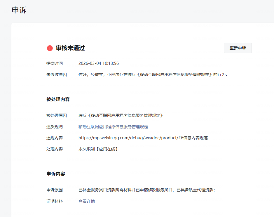 你好,经核实,申诉结果已通过站内信下发,可登录微信公众平台查看申诉结果,感谢反馈。