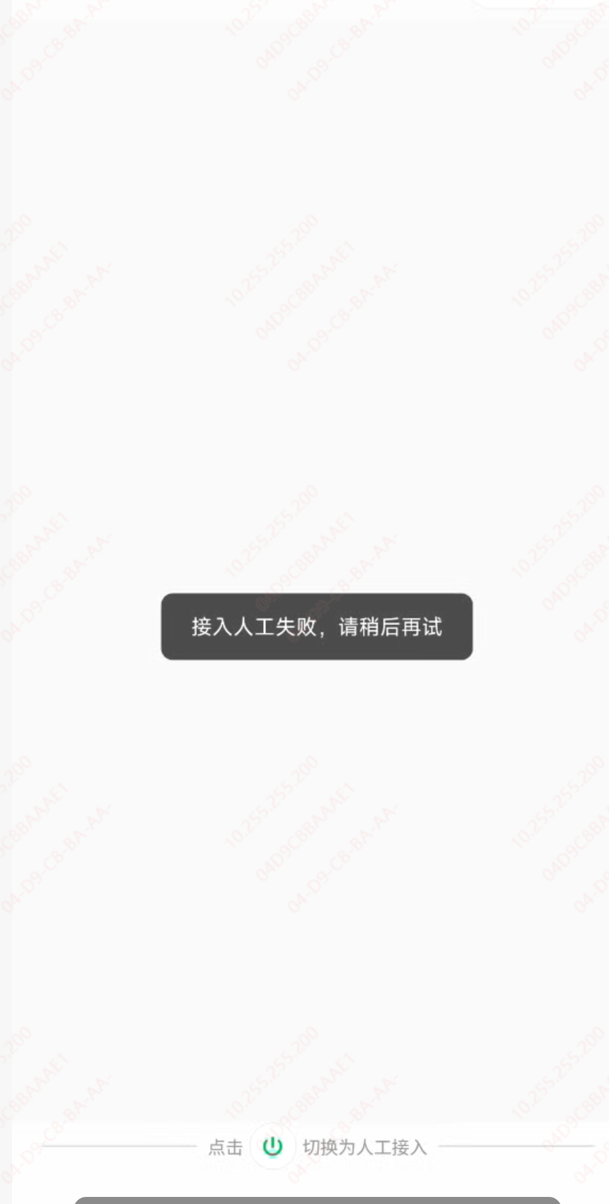 点击弹窗的查看,进入再点击切换为人工接入,提示转接人工失败,请稍后再试