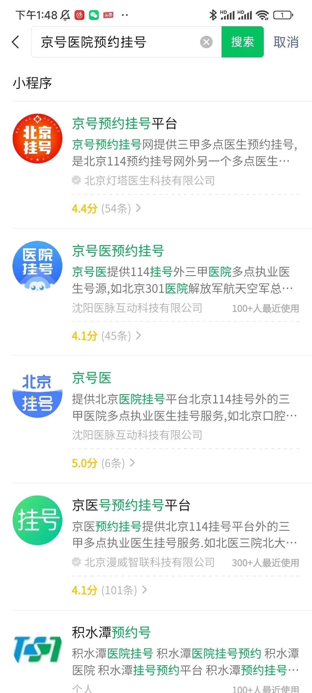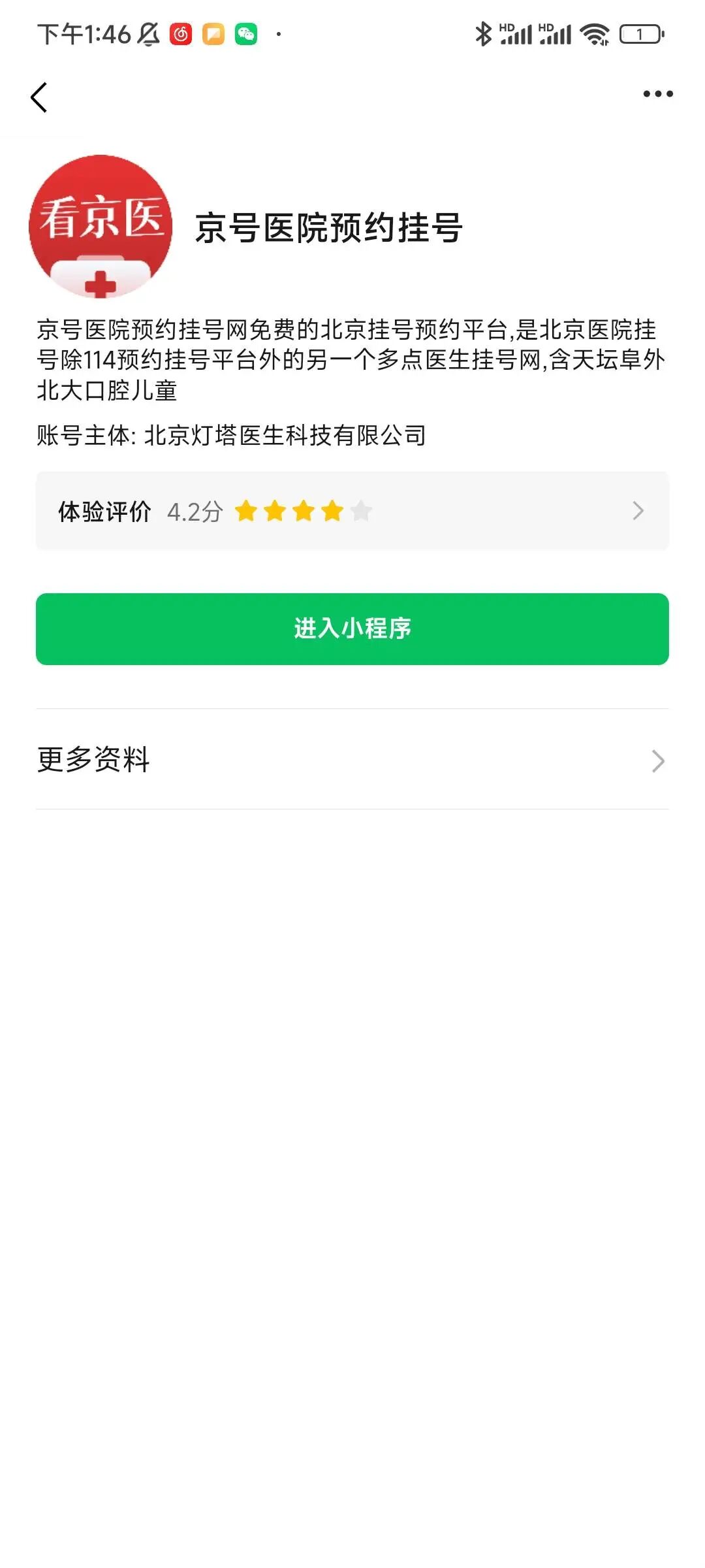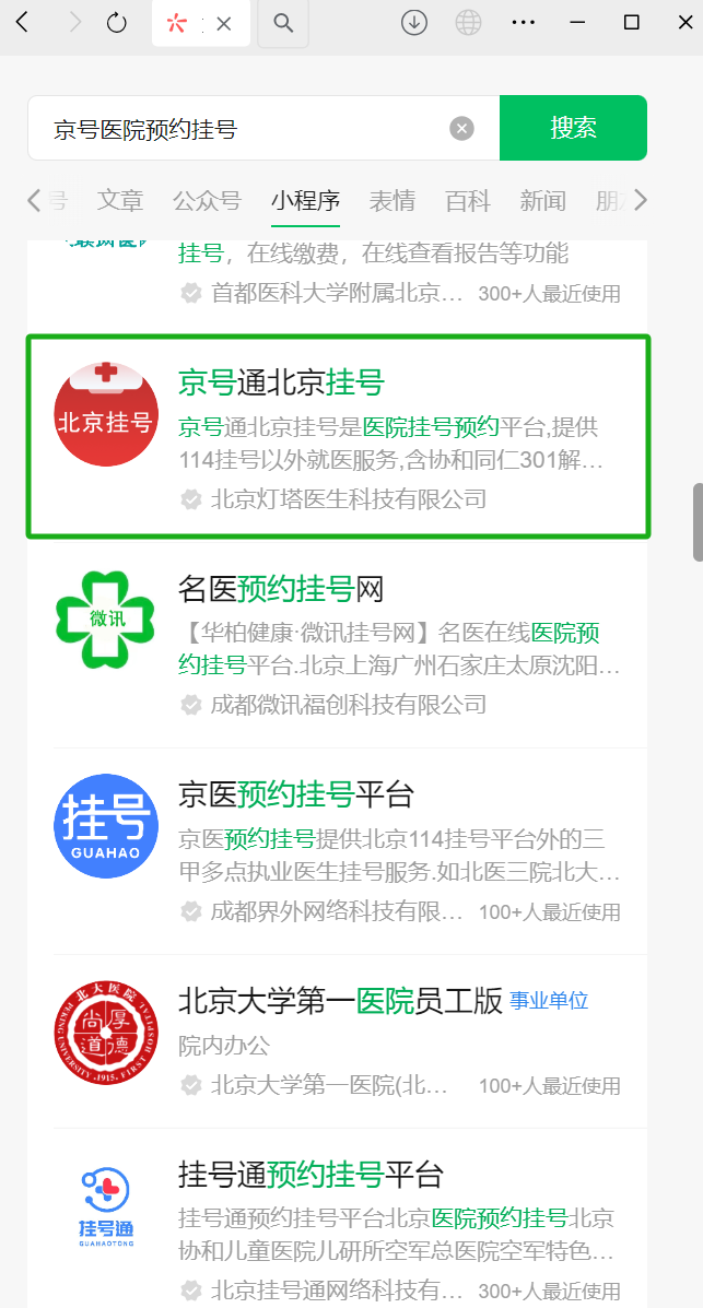 在小程序中搜索 「京号医院预约挂号」搜不到 账号原始ID gh_00323670b306 AppID wx2e0598c0f6cd2336