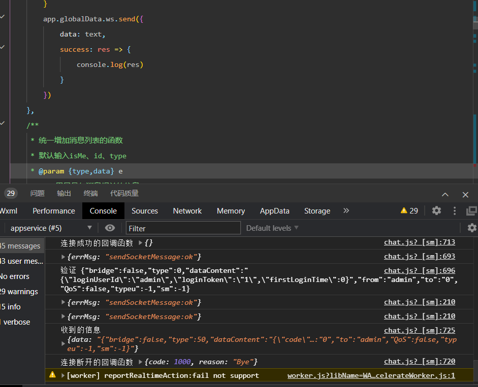 同样的问题。在手机上不会有问题,使用开发者工具或者使用电脑端打开就有这样的问题。一发数据就断开。