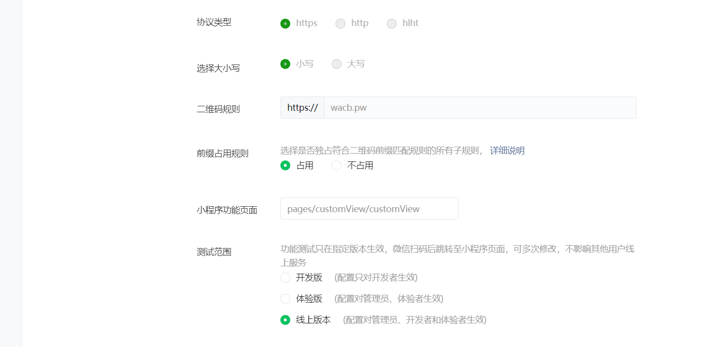 我使用在线二维码生成网站,生成这个链接:https://wacb.pw?id=41, 这个的二维码,微信扫码就显示创建站点,而不是直接跳转小程序指定页面,