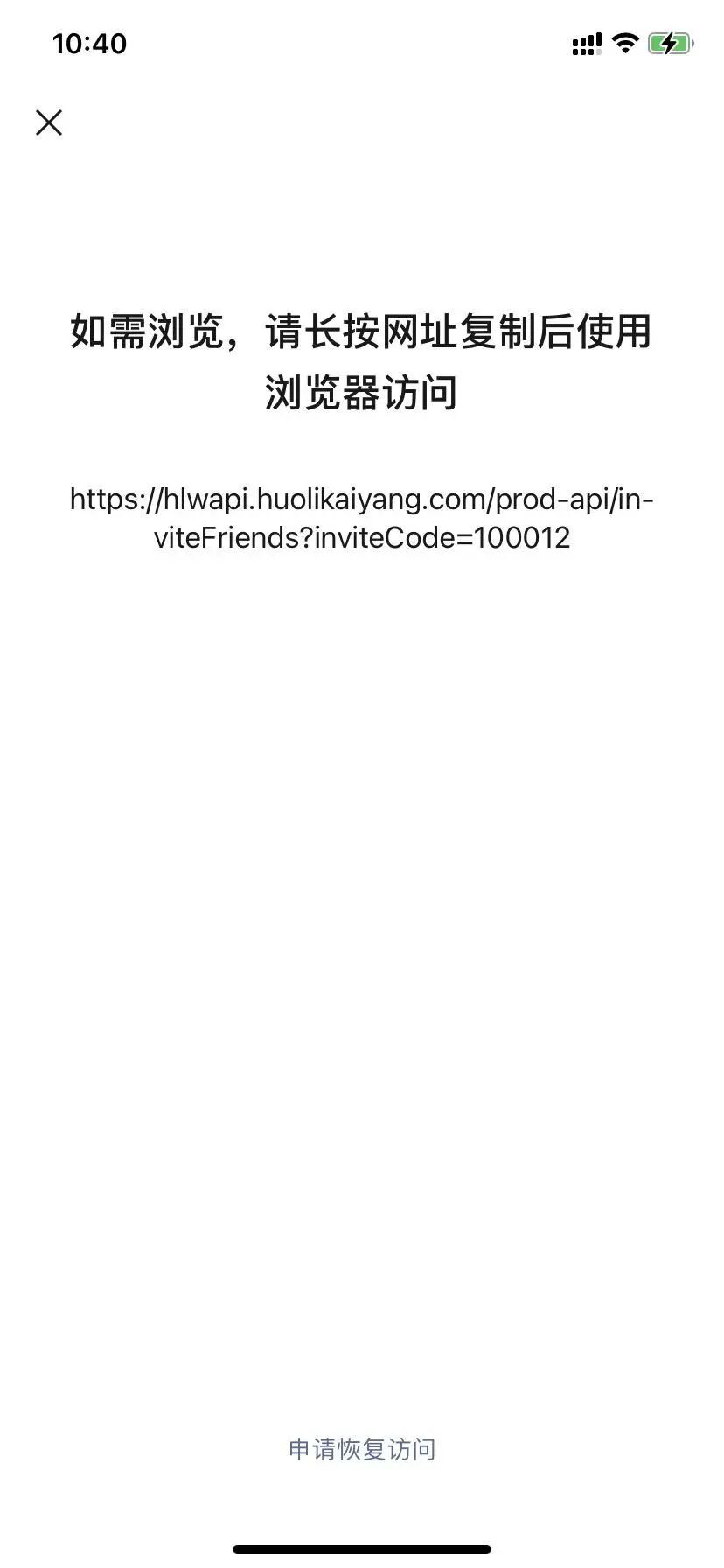 二维码长按识别提示浏览器访问。