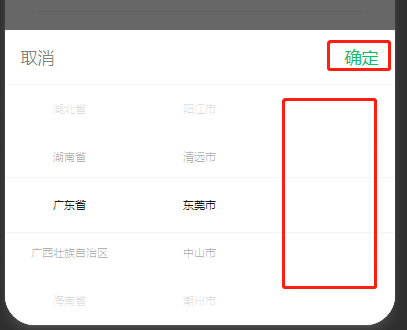选择广东 - 东莞和中山市没有区域选项。 然后点击确定的时候无响应。