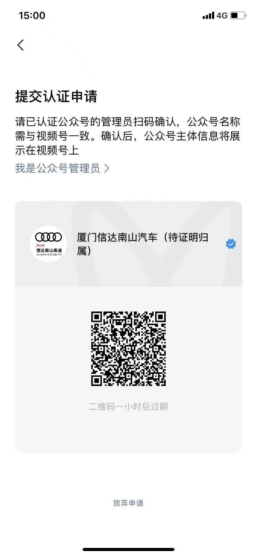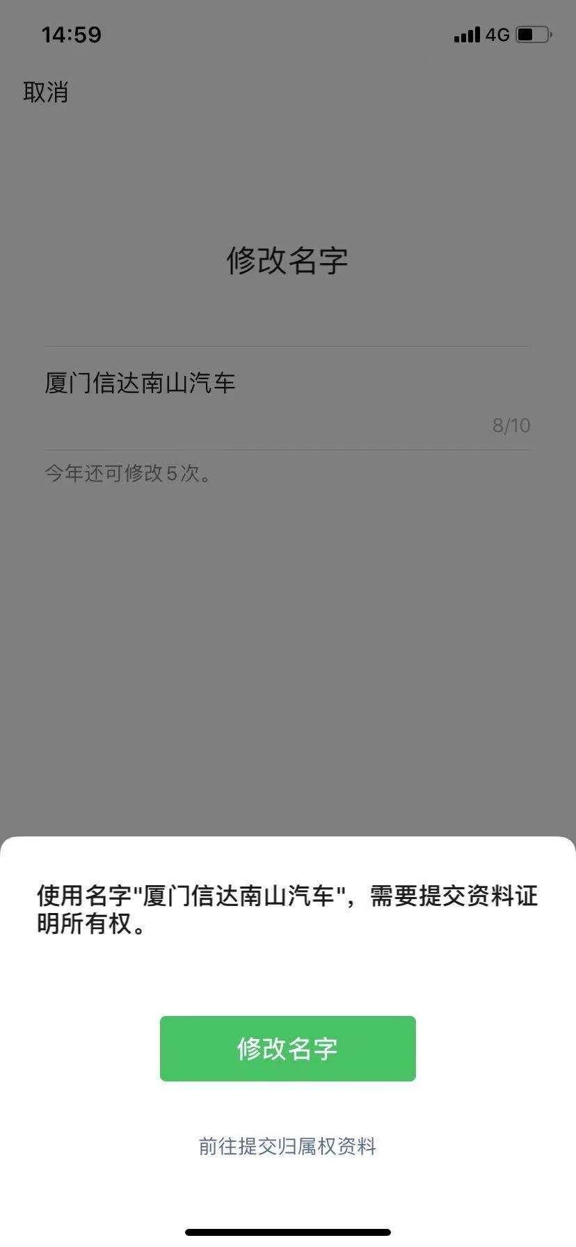 在iphone手机上提交修改名字可显示页面-选择企业-前往提交归属权资料,跳转到的不是提交资料的页面,而是转到认证申请,名字显示
