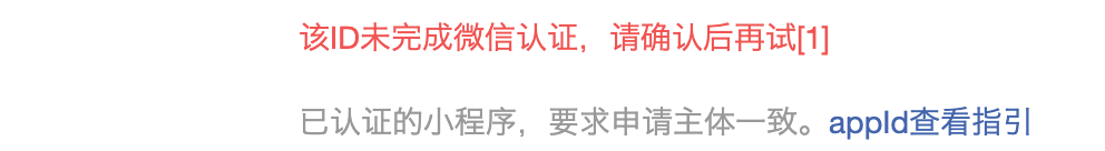 小程序已经打款验证,为什么申请支付的时候提示 该ID未完成微信认证,请确认后再试[1]
