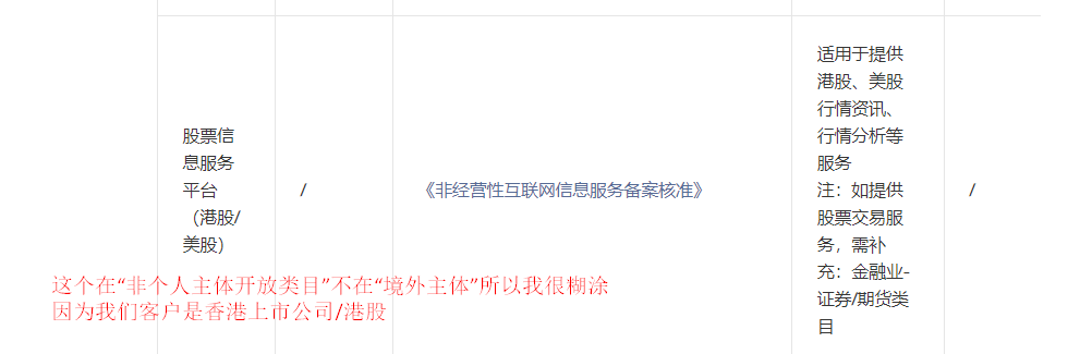 我看了你们境外主体小程序开放的服务类目. 但是我没有看到”金融类”的, 只有银行. 所以这个意思是境外主体,这次是香港上市公司不能展示股票信息投资者关系类的小程序吗?