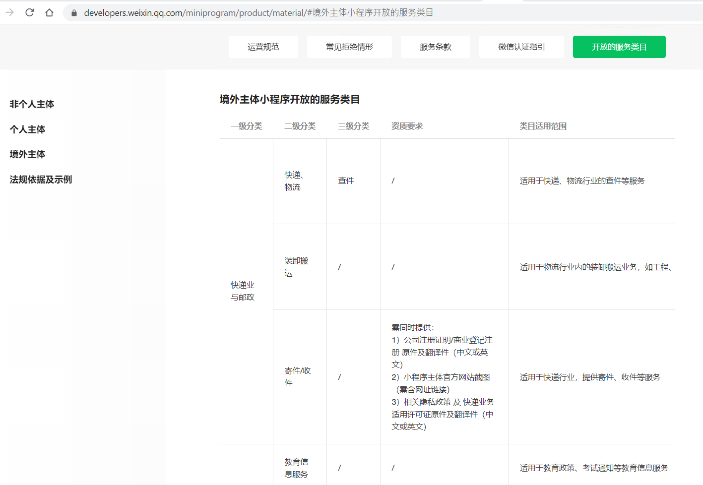 这个”非个人主体” 和 ”个人主体” 的部分是属于国内大陆小程序 不是吗?