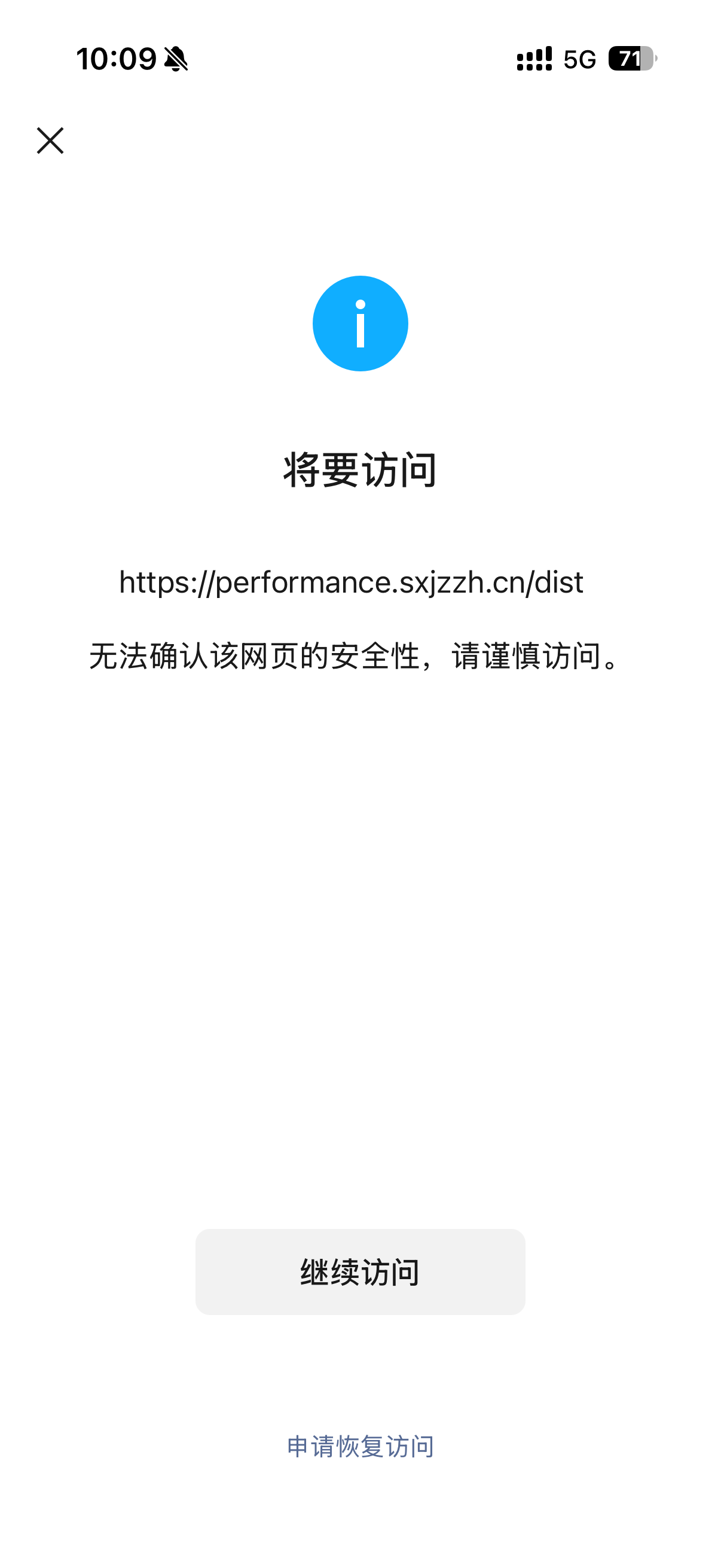 我们的一级域名二级域名都被限制访问 我们的域名是sxjzzh.cn 这是其中一个二级域名被限制,还有其他二级域名同样被限制,好像是sxjzzh.com有问题 误封了我们的cn域名 希望解除这个提示,太影响客户使用了