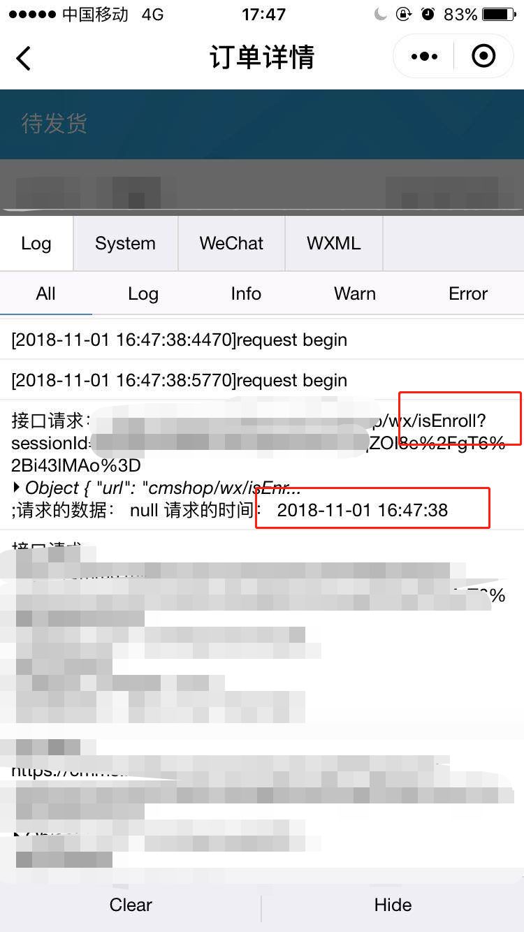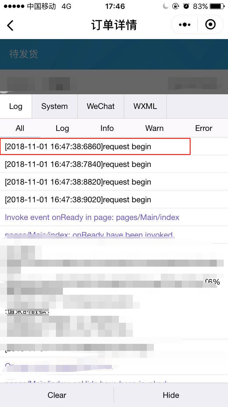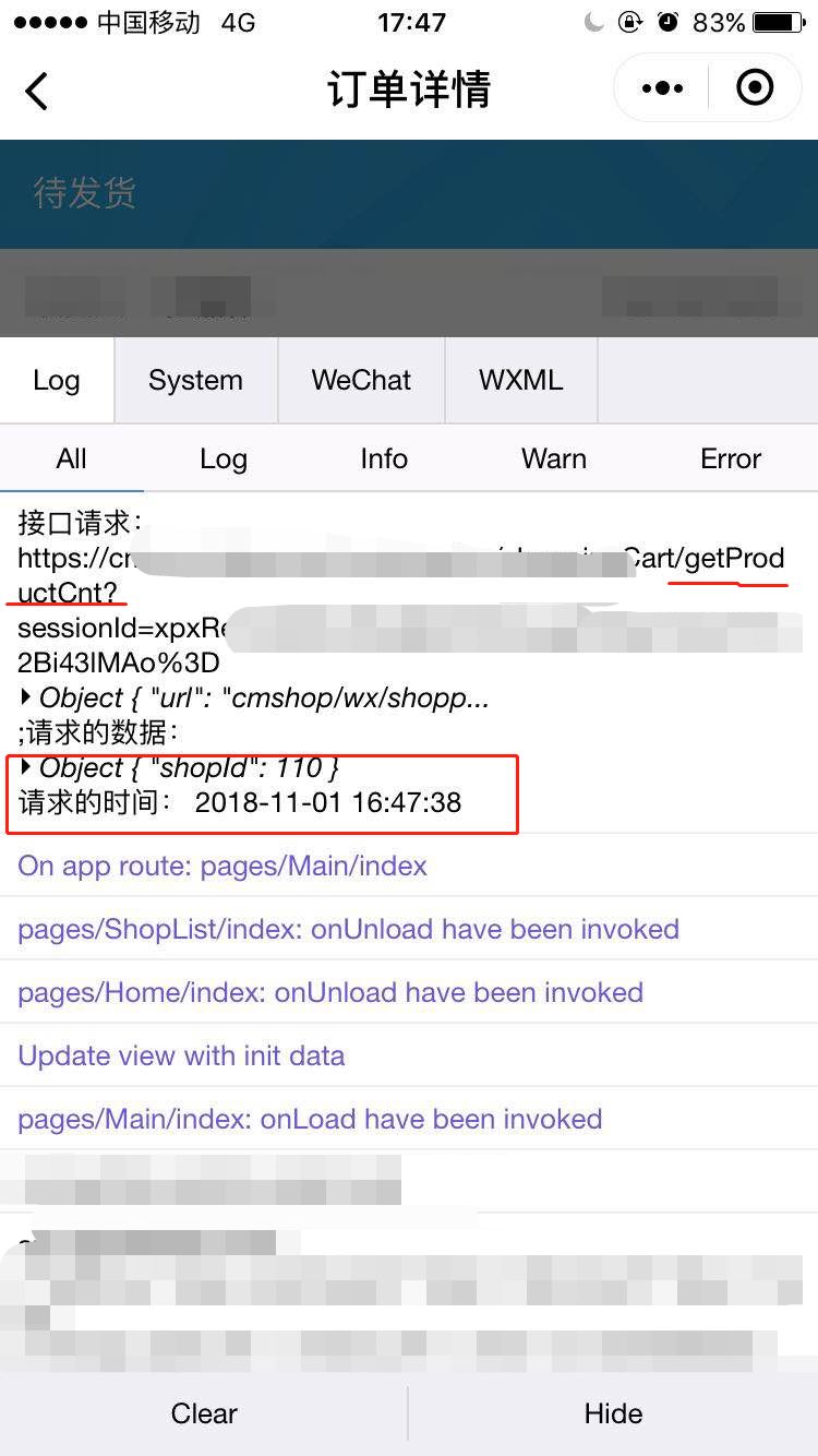 也可以在这张图看到,这个时间是小程序自己输出的。请求时间是2018-11-01 16:47:38