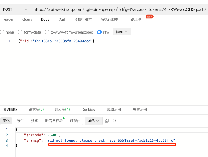 https://api.weixin.qq.com/cgi-bin/openapi/rid/get?access_token=74_zXWeyocQB3q