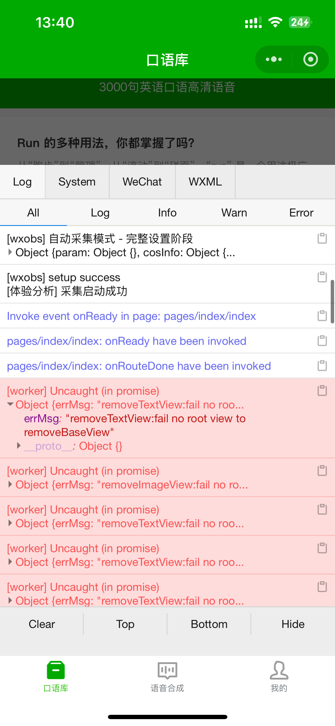 [worker] Uncaught (in promise) {"errMsg": "removeImageView:fail no root view to removeBaseView"}
