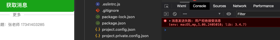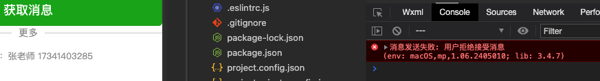 2.然后用户取消拒绝消息,再次发送消息,还是一样消息被拦截: