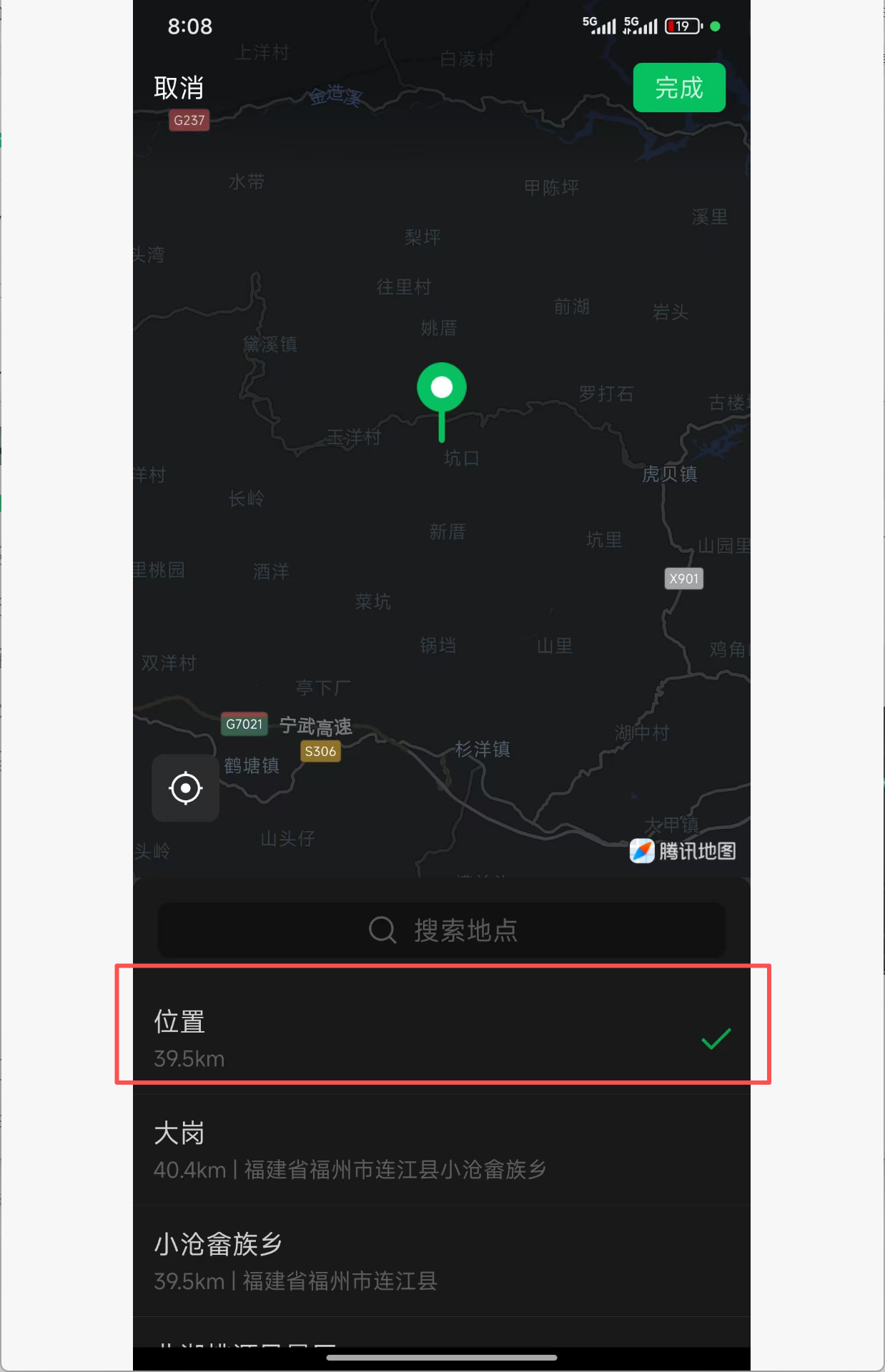 选择位置,点击完成,就会报错,但是选择大岗,这种有地理名称的就不会报错