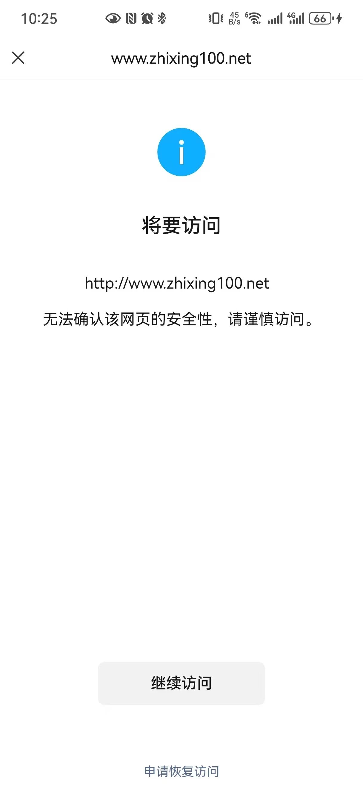 您好,域名zhixing100.net在西部数码注册并通过优刻得备案通过,我是网站开发者,访问时间如图2025/11/3,点开网址提示“无法确认该网页的安全性,请谨慎访问。”经检查网页里没有不安全的内容,请核实后帮忙解除拦截,谢谢!尽快处理,急急急,现在需要打开使用,谢谢!