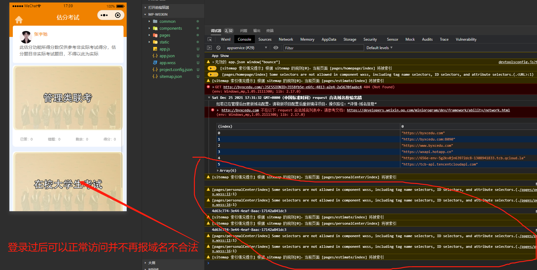 并且功能可以正常使用,且只能登录以后才可以调取出数据,登录以后就不会报域名不合法了