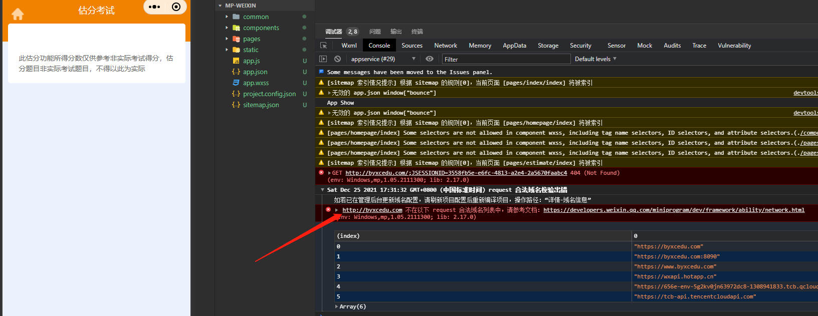 在小程序平台配置了合法域名,并在项目请求地址中输入的请求地址与小程序平台配置的合法域名一致,为什么报错校验不合法的域名是其他的域名