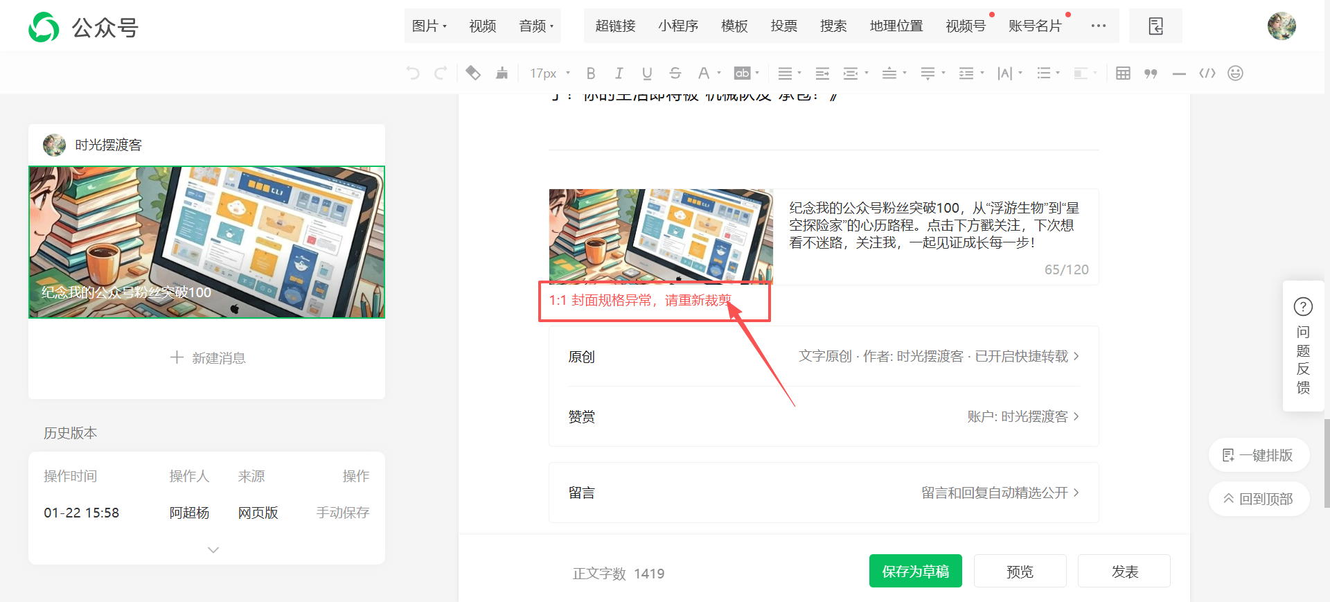 1.封面上传后,总提示 1:1 封面规格异常,请重新裁剪