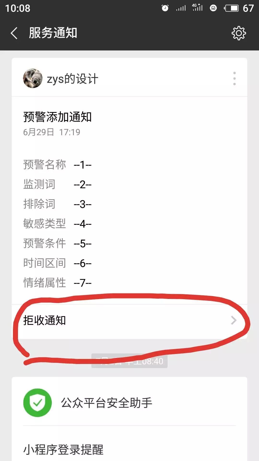 我是个人域名,设置小程序模板后,在服务通知中接收到消息,但是没有“进入小程序查看”这一选项