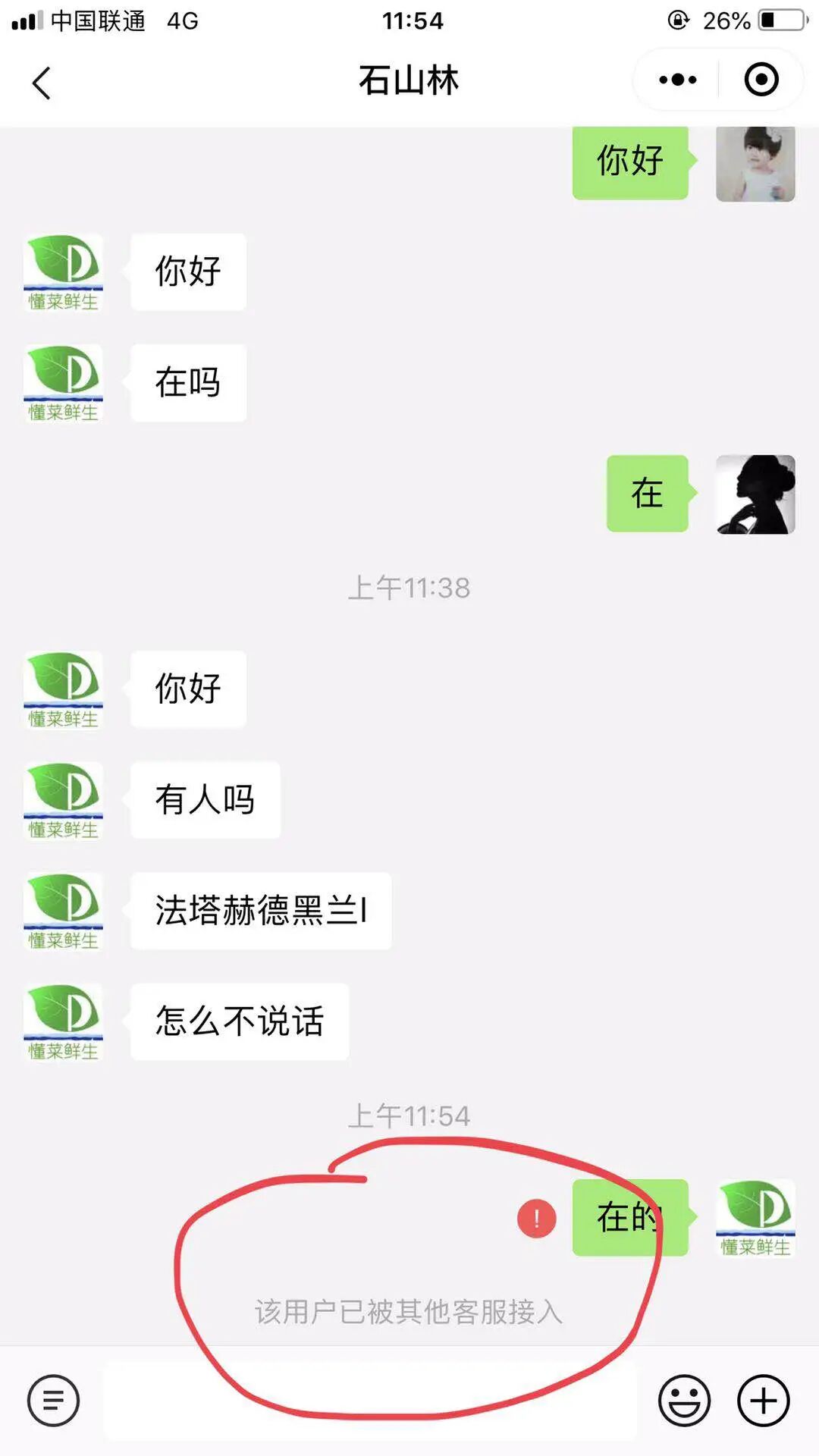小程序客服助手接客户咨询,客服A,接收客户的咨询,然后A离线之后,客户继续咨询,客服B接入后,给客户回复内容,提示,该用户已被其他客服接入。