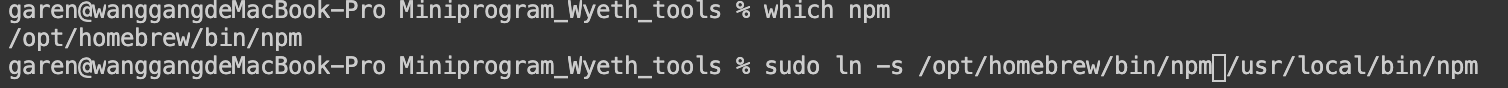 npm 和 node 都需要软链到 /usr/local/bin/ 目录下,即该目录下需要 node 和 npm。