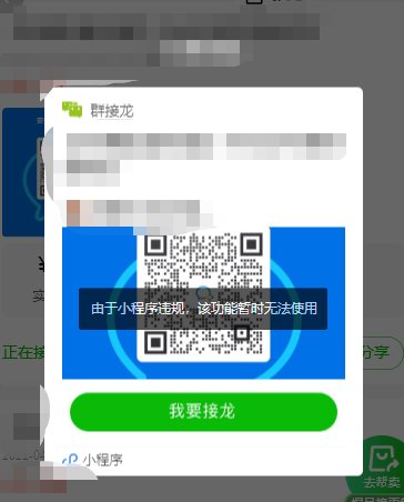 创建的群接龙小程序分享时提示小程序违规,怎样解除管控?