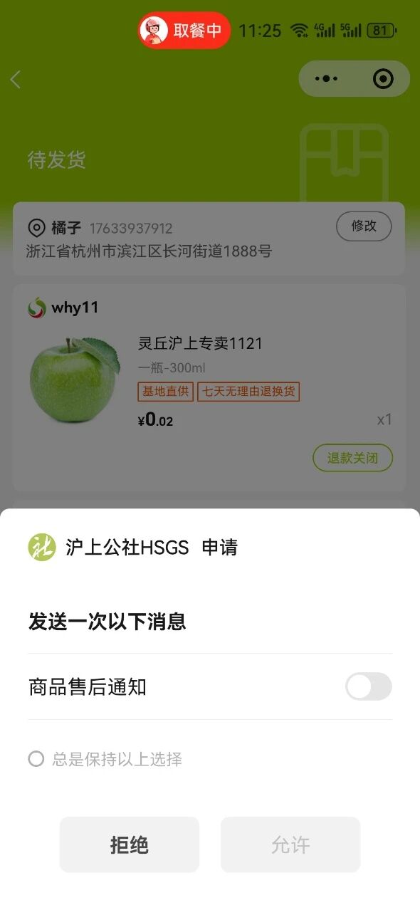 使用接口:https://api.weixin.qq.com/cgi-bin/message/subscribe/send发送小程序消息,在小程序弹出的申请选择拒绝,但是最终服务通知还是会收到消息