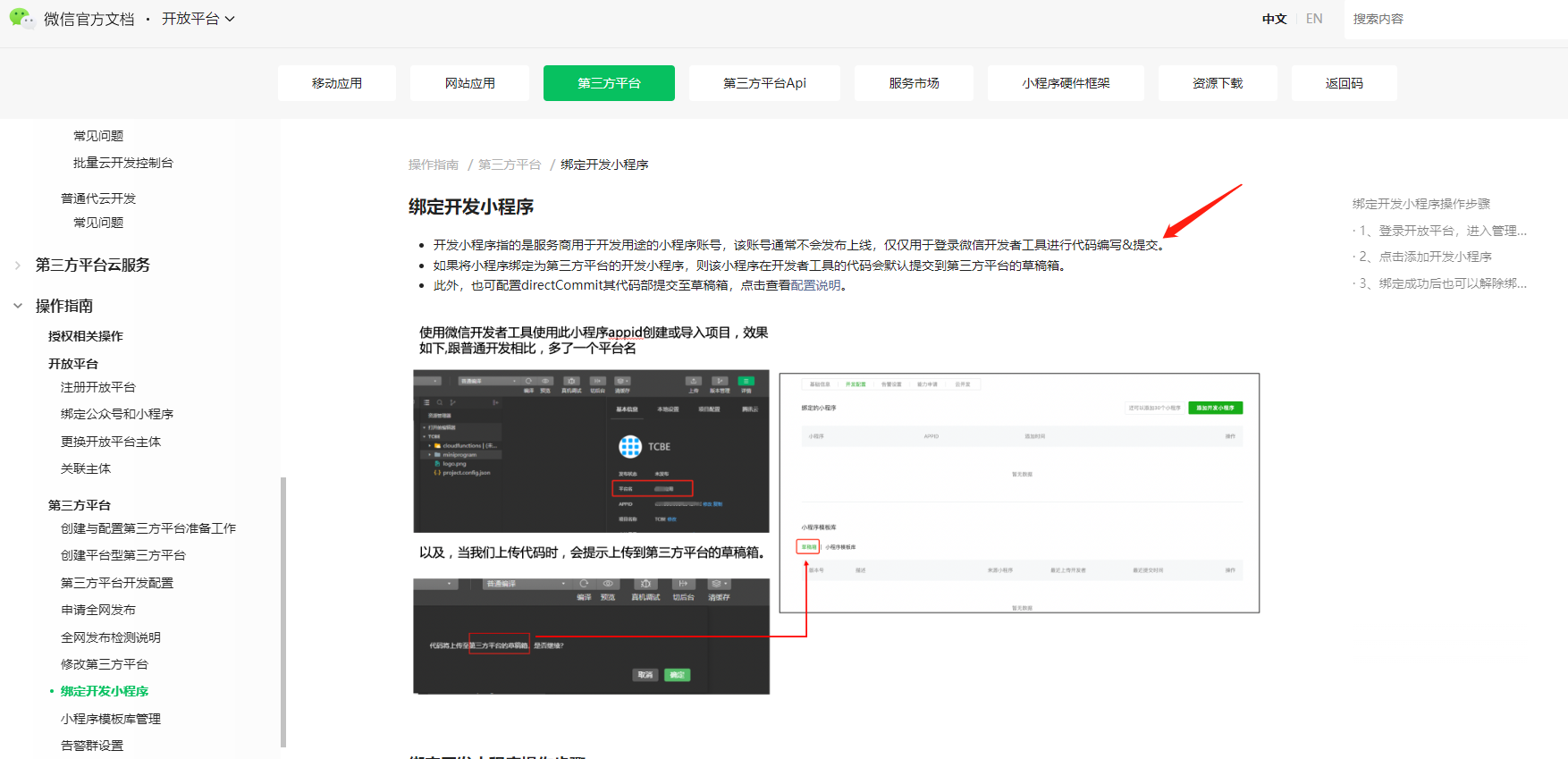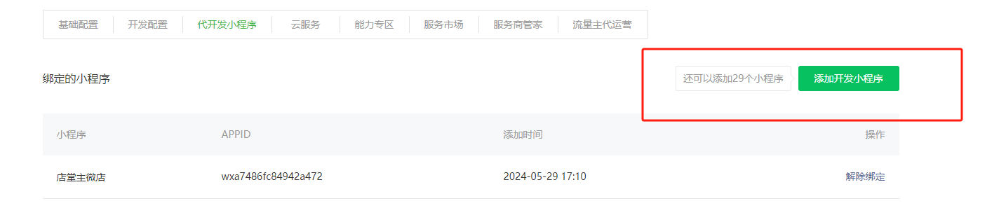 详情请参考绑定开发小程序说明