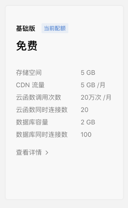 这是云开发调免费版本,通过你的描述,应该够用了。