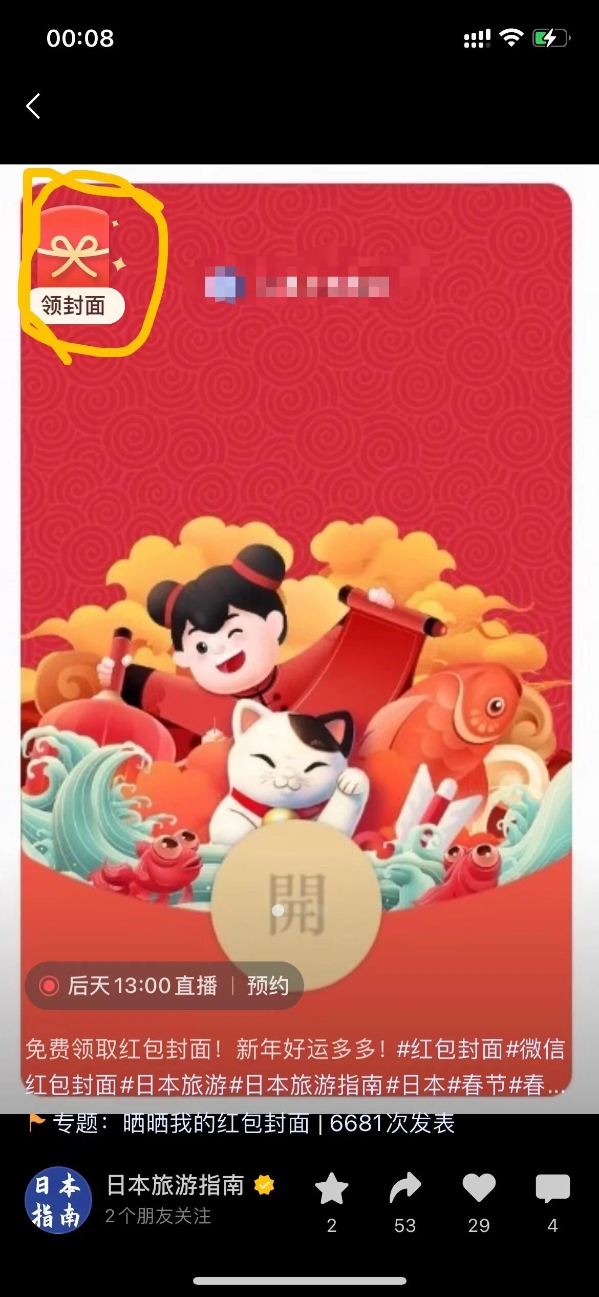 如图,无意中看到视频号的这个视频,点左上角可以直接领取红包封面,请问这个是如何做到的?