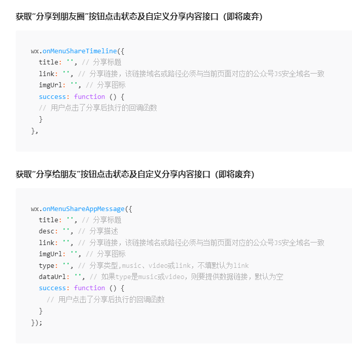 目前公众号分享用的 JS-SDK 插件, 但是我看官方文档onMenuShareTimeline和onMenuShareAppMessage即将被废弃