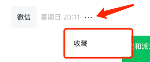 鼠标悬停在用户发送的消息上面,旁边会有「...」的菜单,点击下可看到「收藏」按钮。