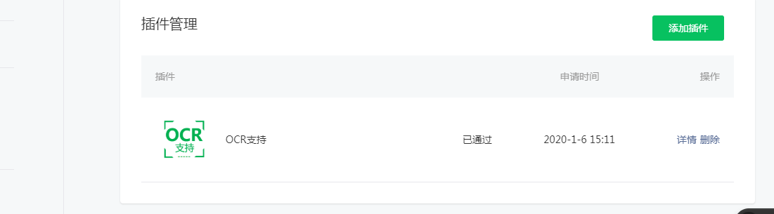 1、我在添加OCR插件后,在微信公众平台提交发布审核时它提示说插件更新,但是我找不到更新插件的入口