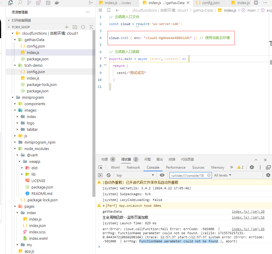 云函数调用找不到,
