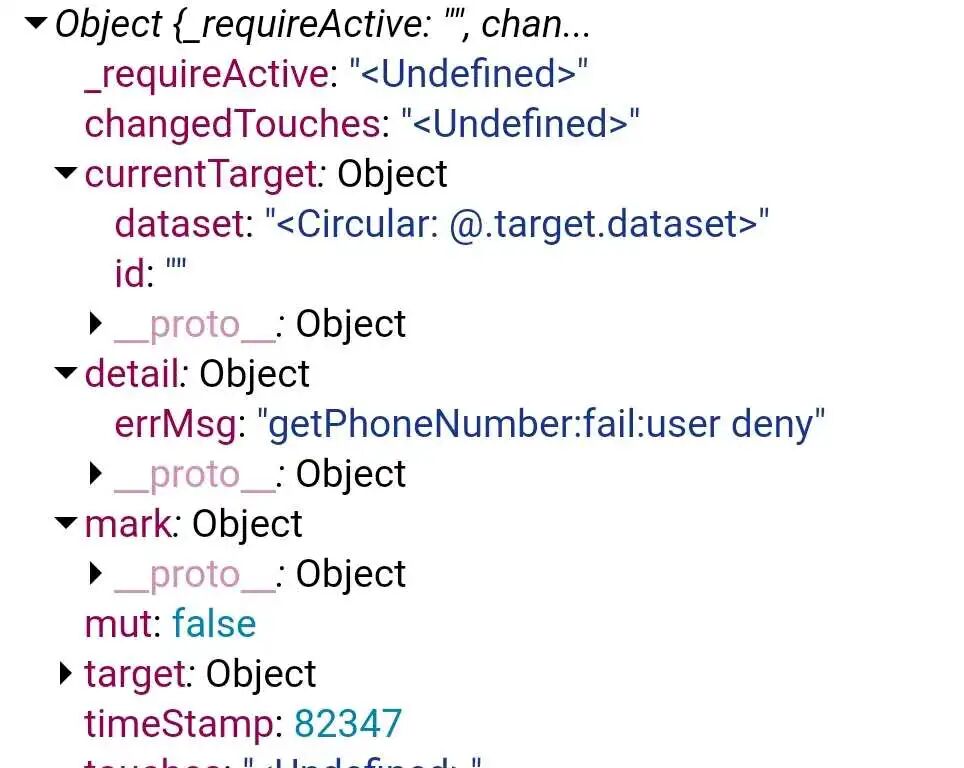 errMsg === 'getPhoneNumber:fail user deny' 开发者工具打印出来的拒绝授权手机号 errMsg === 'getPhoneNumber:fail:user deny' 真机测试调试器打印出来的结果