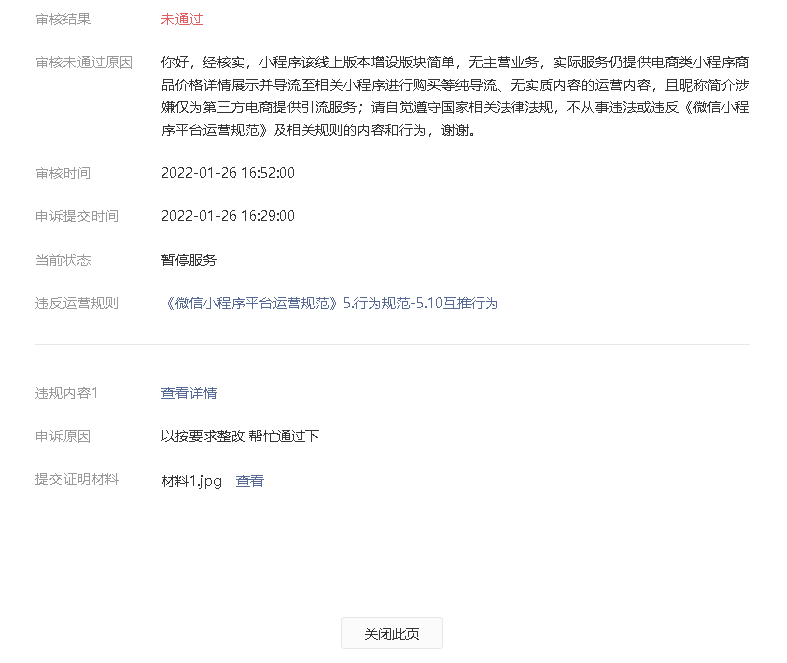 感谢反馈,申诉结果已通过站内信下发,可在mp后台登录查看详情。