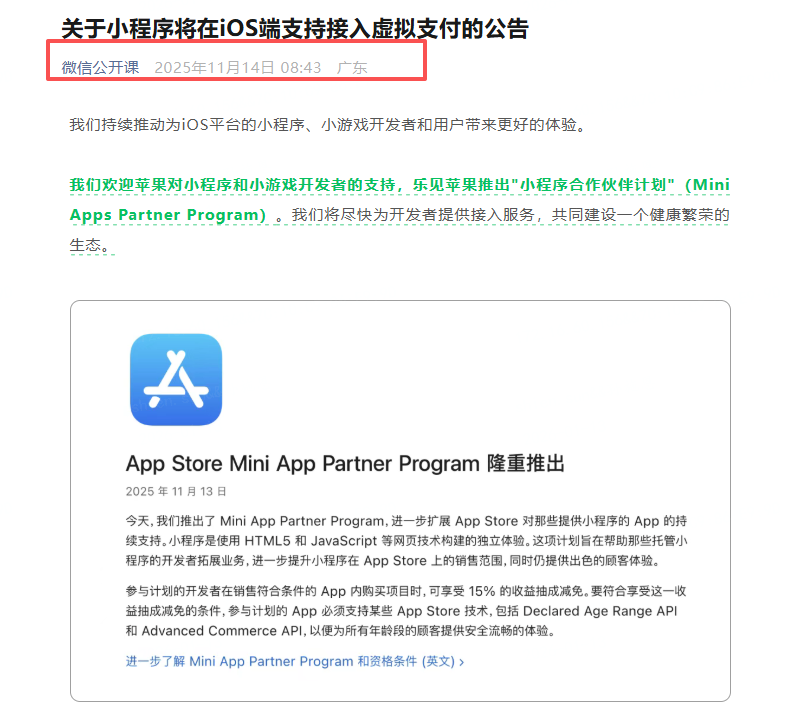 微信小程序IOS端是否支持虚拟商品支付,请明确下