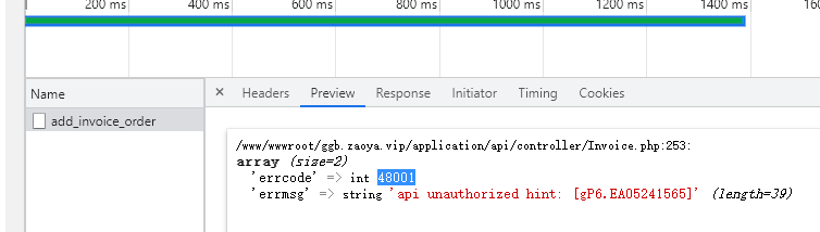 请求的 array (size=7) 's_pappid' => string 'd3hlYmYzMDJmMjJmMTMyMTg0XyBLB2-zwoXARYDHsovwhGd3GeT_qiPzJMCROMVPZSzp' (length=68) 'order_id' => string '1234' (length=4) 'money' => string '100' (length=3) 'timestamp' => int 1623892203 'source' => string 'app' (length=3) 'ticket' => string 'VUkHJgW2SFNG4xhs6ZntSPaOvAvIc7WlJdSlhYJzKaLUqi66QYjH1J3VGmBuhDKm63IknU0TWJN1khw0srtV8Q' (length=86) 'type' => string '1' (length=1) 返回的 array (size=2) 'errcode' => int 48001 'errmsg' => string 'api unauthorized hint: [KxKjcA02031512]' (length=39)