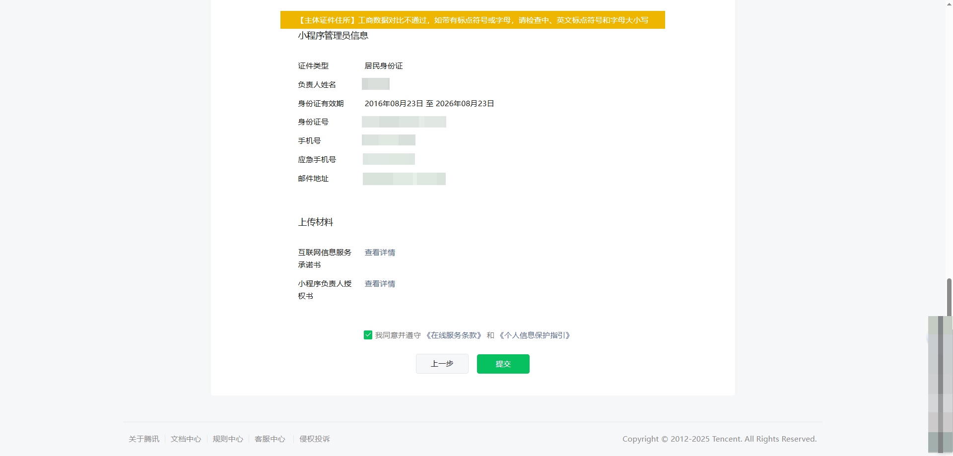 如上图所示,小程序复用主体资料进行通过后进行备案,提示主体证件住所与工商数据对比不通过,我司最新营业执照与工商数据所对应住所是一致的,但最开始的主体住所有发生变更,现在要如何解决这个问题才能进行备案?