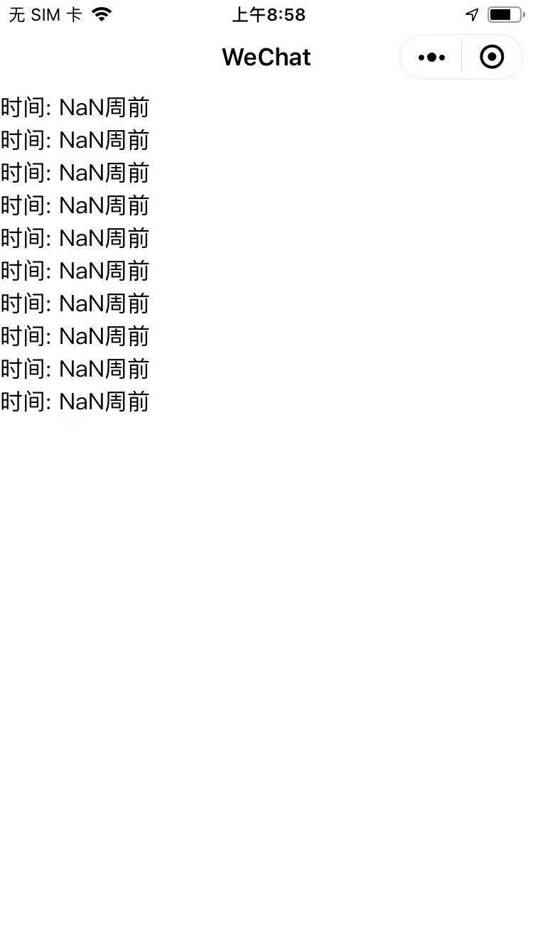 functionprettyDate(data) {//姑且当传入的是日期格式vardiff = (((newDate()).getTime() - data.getTime()) / 1000),day_diff = Math.floor(diff / 86400);returnday_diff == 0 && (diff < 60 &&"刚刚"||diff < 120 &&"1分钟前"||diff < 3600 && Math.floor(diff / 60) +"分钟前"||diff < 7200 &&"1小时前"||diff < 86400 && Math.floor(diff / 3600) +"小时前") ||day_diff == 1 &&"昨天"||day_diff < 7 && day_diff +"天前"||Math.ceil(day_diff / 7) +"周前";}断开真机调试,再点开开发版就发现时间全部都变成了刚刚。