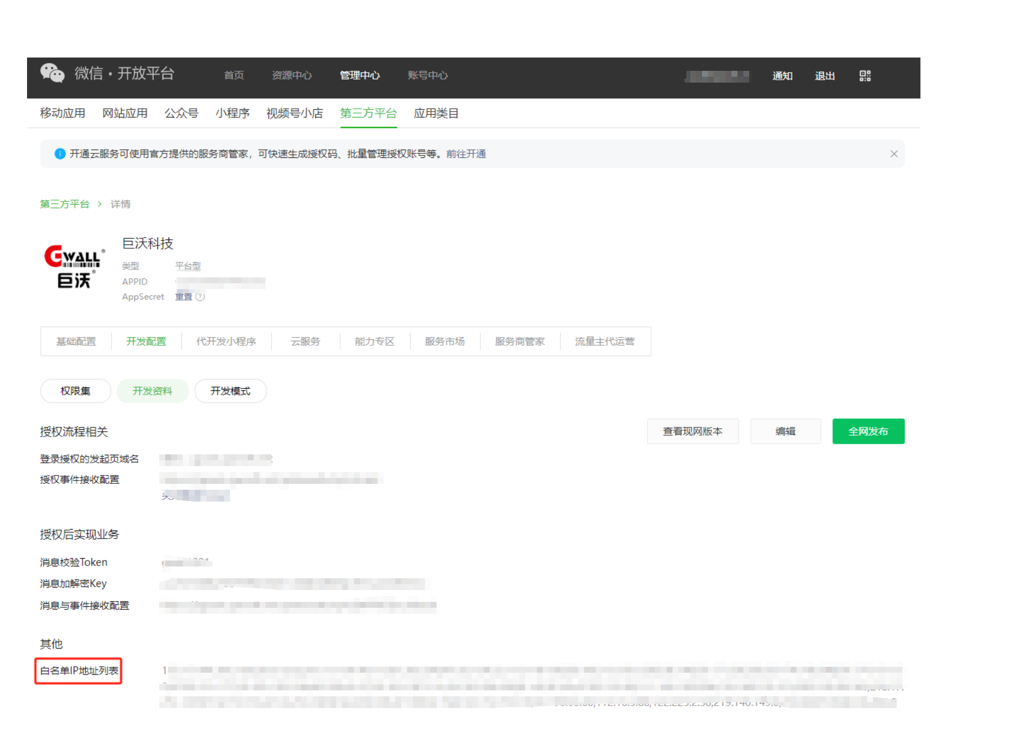 开放平台中的第三方平台,白名单IP地址怎么提额呀?