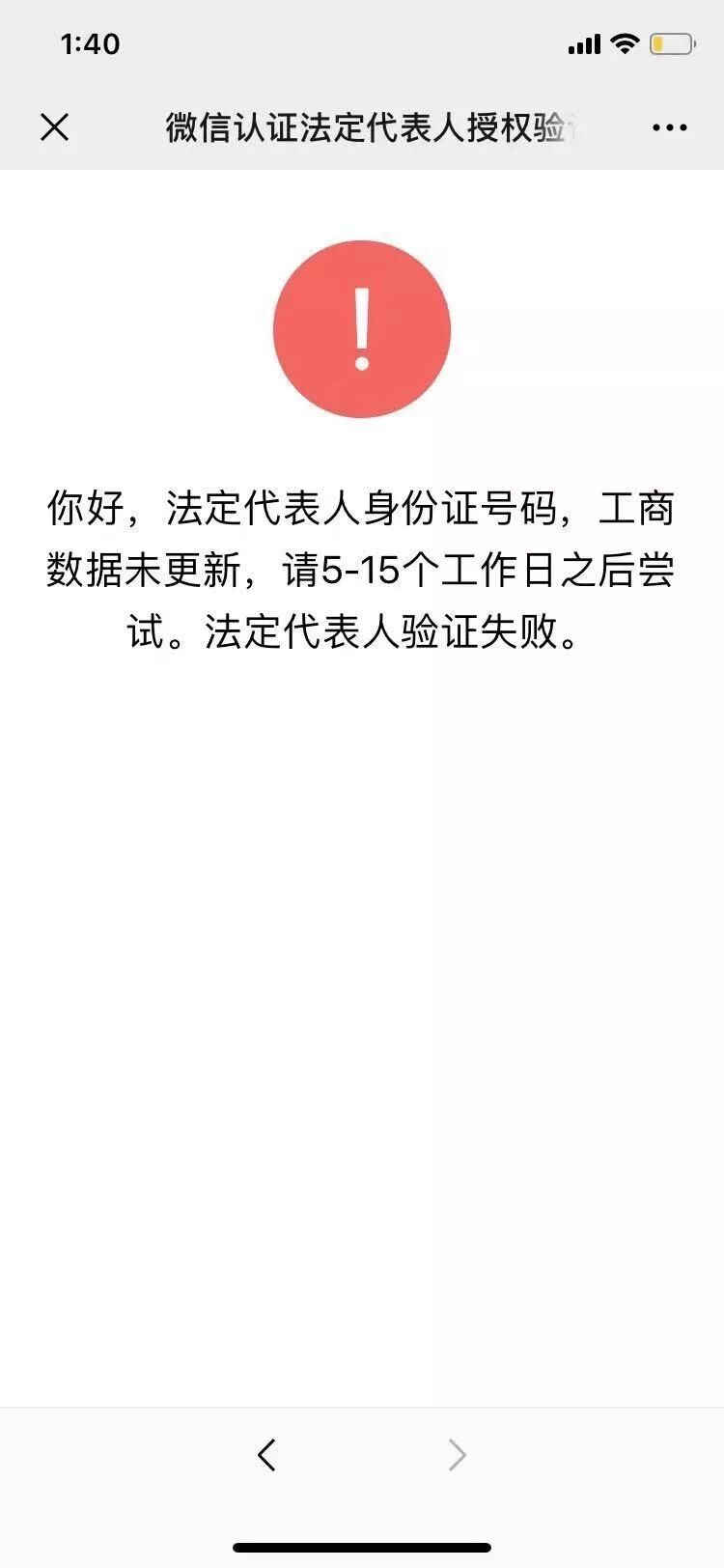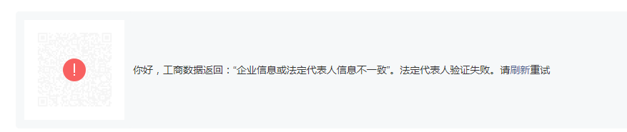 你好,核查发现填写的主体名称与营业执照上的主体名称不一致,故法人验证失败。请严格按照营业执照的主体名称填写。