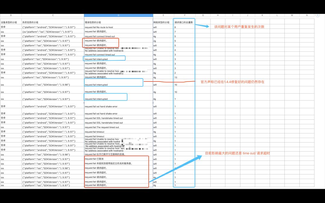 小程序最近经常碰到 request:fail timeout / request:fail 请求超时 然后我写了一个事件上报,发现了各种 request:fail 错误。