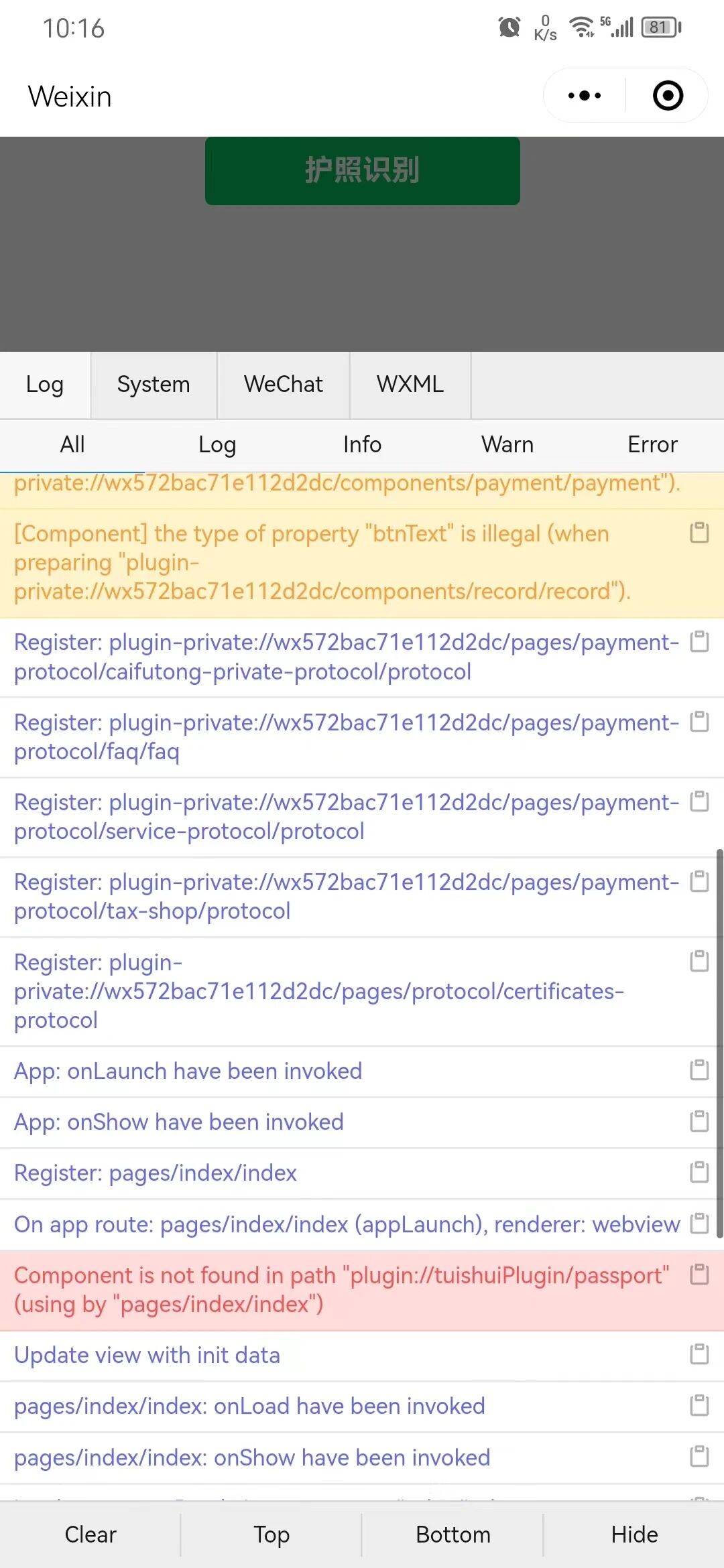 控制台提示:Component is not found in path "plugin://tuishuiPlugin/passport"