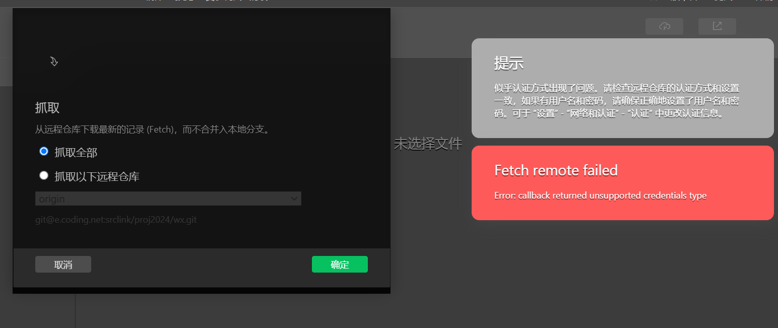 提示信息:callback returned unsupported credentials type