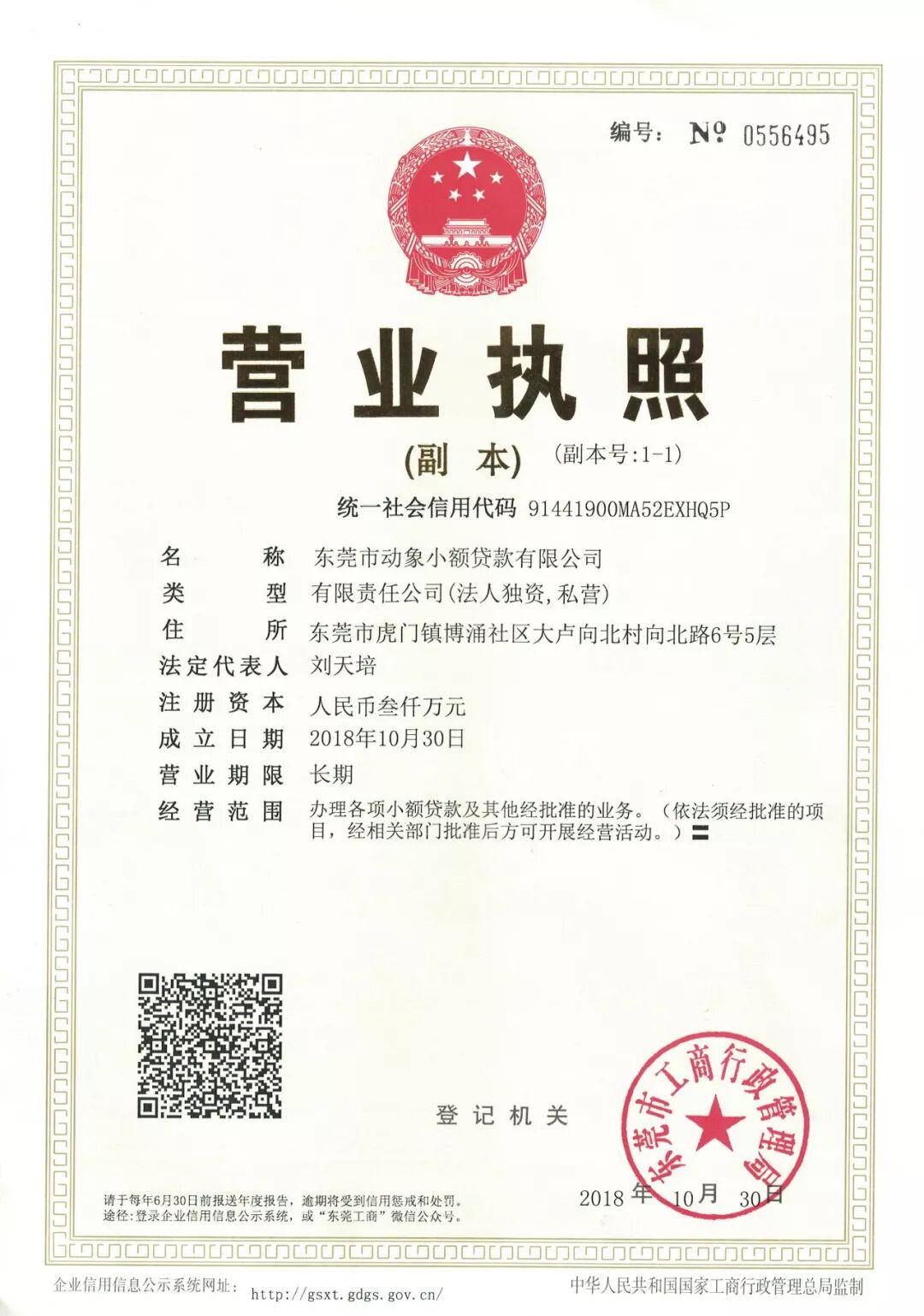 一、小程序注册主体:东莞动象小额贷款有限公司