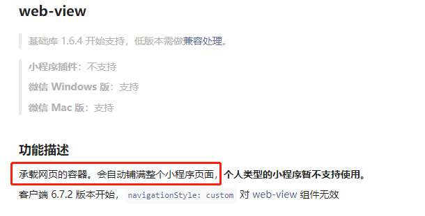 使用web-view的页面只会显示web-view的内容,不可以自定义的