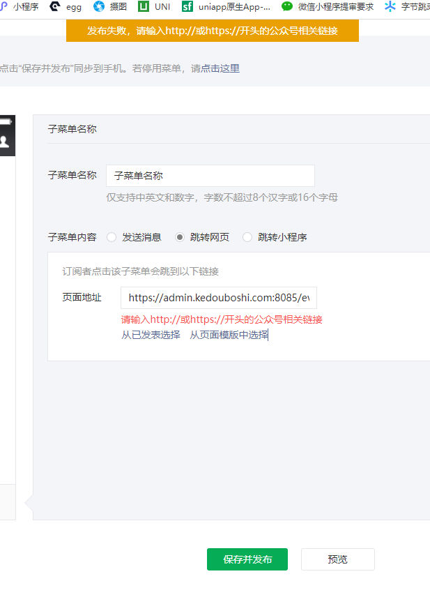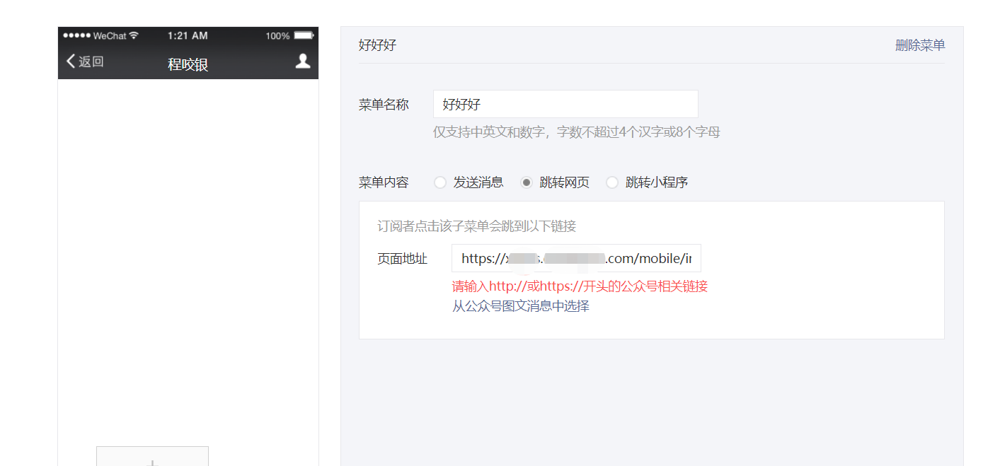你好,所有公众帐号均可在自定义菜单中直接选择素材库中的图文消息作为跳转到网页的对象。认证订阅和服务号还可直接输入网址。