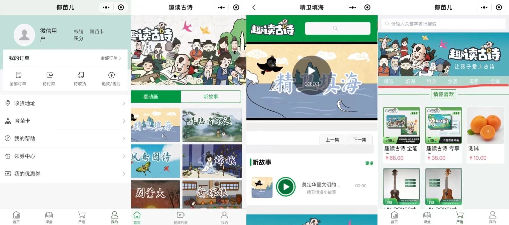 1.小程序【趣读古诗】板块涉及提供播放、观看等服务,建议补充选择【文娱-其他视频】类目。小程序类目适用范围及其资质详情:https://developers.weixin.qq.com/miniprogram/product/material/