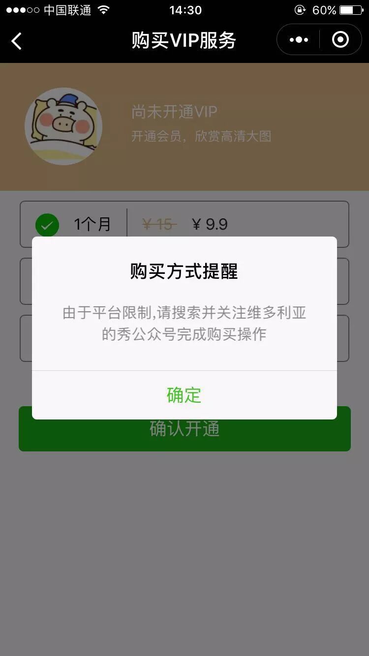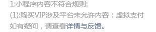 你好,经核实,贵方小程序部分图片需充值成为VIP解锁观看,属于支付才能解锁的新功能,为平台未允许的内容:虚拟支付。
